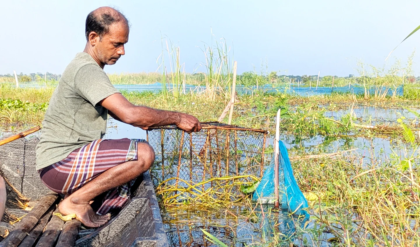 পরমানন্দ মল্লিক বলেন, ‘জমি আছে, কিন্তু কিছু ফলাইতে পারি না। এখন বিলের মাছই ভরসা। সকালে জাল নিয়ে যাই, মাছ ধরি, বিকেলে কৃষ্ণনগর আড়তে বিক্রি করি। যা পাই, তাই দিয়ে সংসার চলে।’